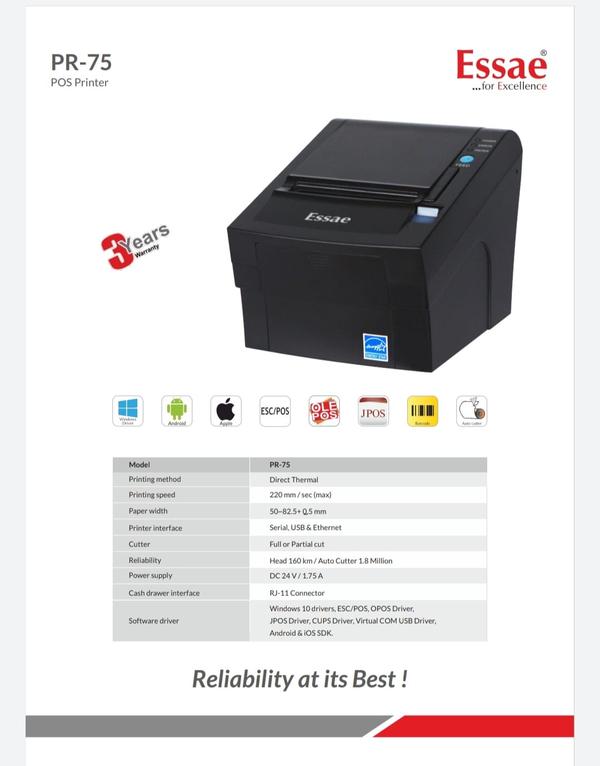 80 mm, Auto-cutter, 280mm/sec, 32 bit micro controller based, USB, 24V operation with Cash drawer kick-out function(RJ-11), Print Head reliability 100 km
